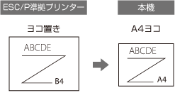 ESC/P準拠プリンターにB4サイズのカット紙をヨコ置きにセットして使用していたときに選択します。A4サイズに縮小し、用紙のほぼ中央(ワイド領域モードでは印字領域ほぼいっぱい)に、ランドスケープで印刷します。