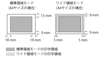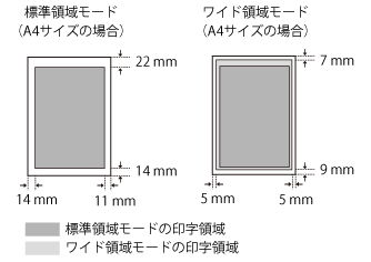用紙のサイズが小さい場合、<ESC/P設定>の<領域>を<ワイド>に設定しても、印字領域拡大の効果があまり上がらないことがあります。