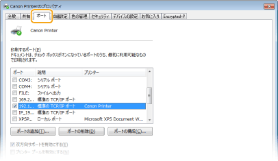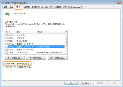 [ポート]タブで[双方向サポートを有効にする]にチェックマークが付いていることを確認する
