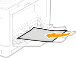 一度印刷した用紙のウラ面に印刷することができます。用紙の端を伸ばしてカールを取り、プリントする面を下にして手差しトレイにセットしてください。 一度印刷した用紙のウラ面に印刷するときは、操作パネルの設定メニューにある<手動両面印刷(手差し)>を<2面目>に設定してください。 手動両面印刷(手差し)印刷のたびに1枚ずつセットしてください。 本機で印刷した用紙のみ使用できます。 一度プリントした面の上からさらに印刷することはできません。 |