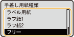 セットする用紙をひんぱんに変更する場合は、<フリー>に設定しておくことで、その都度、設定を変更する手間が省けます。ただし、プリンタードライバー側で設定した用紙種類と、実際にセットされた用紙種類が異なっていても印刷が行われるため、注意が必要です。