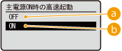 ジョブ中またはエラー発生中や、操作パネルもしくはリモートUIから何らかの設定変更をした場合などは、電源スイッチを押しても、クイックオフではなくシャットダウンになります。 高速起動設定中でもシャットダウンで電源を切ると、次回は通常の起動になります。 高速起動設定中にオートシャットダウンした場合は、クイックオフになります。オートシャットダウンを設定する クイックオフしてからすぐに電源を入れなおすと、起動に時間がかかる場合があります。 |