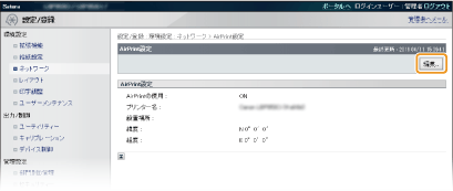 本機を識別するための名称や設置場所を登録できます。AirPrintを使用できないように設定することもできます。設定はリモートUIを使って行います。
