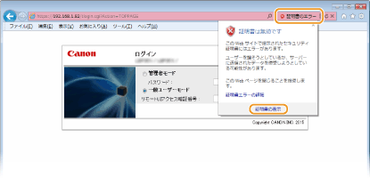 アドレス入力欄の右にある[証明書のエラー]