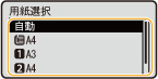 非定型サイズの用紙(ユーザー設定用紙)がセットされている給紙部は選択できません。