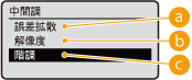 <誤差拡散>が<ON>のときは、<解像度/階調>は表示されません。