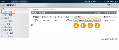 パソコンから印刷した文書の印刷状況(印刷中/印刷待機中)を確認したり、文書の削除や割り込みをしたりすることができます。