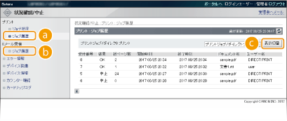 印刷履歴やEメールの受信履歴が一覧表示されます。