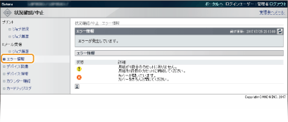 エラーが発生しているとき、ポータルページ(メイン画面)の[エラー情報]に表示されているメッセージをクリックすると、このページが表示されます。