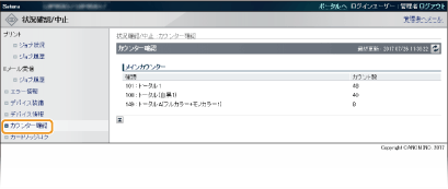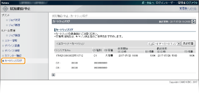 トナーカートリッジ/ドラムカートリッジの利用実績などを確認できます。