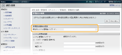 [現在のシステム管理者パスワード]に管理者パスワードを入力する