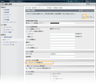 チェックマークを付けると本機の印刷動作を制限します。制限をしないときはチェックマークを外します。