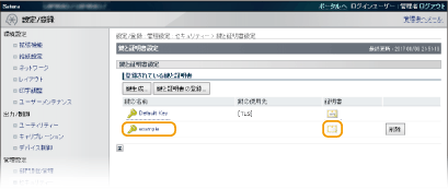 登録する証明書の[鍵の名前]または[証明書]をクリックする
