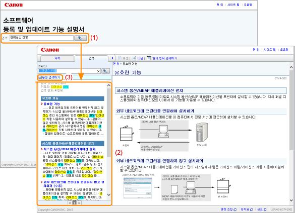 이 설명서에서는 AND 검색을 이용할 수 있으므로 두 개 이상의 키워드를 입력하여 검색 결과를 좁힐 수 있습니다. 키워드를 입력할 때 키워드 사이에 스페이스를 입력해 주십시오.