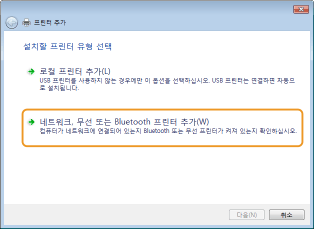 Windows Vista/7/Server 2008을 사용하는 경우 [네트워크, 무선 또는 Bluetooth 프린터 추가]를 클릭합니다.