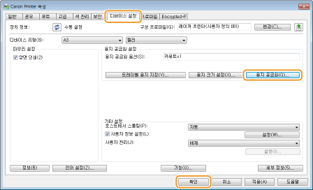옵션 용지 급지대 또는 카세트 급지 장치가 기기에 장착된 경우 프린터 드라이버에서 다음 작업을 미리 수행하십시오.