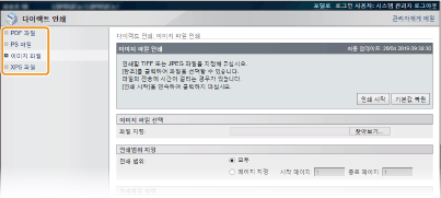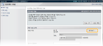 파일을 열지 않고 웹브라우저(리모트 UI)를 통해 파일을 인쇄할 수 있습니다. 또한, 웹에 URL만 지정하여서도 PDF 파일 인쇄가 가능합니다.