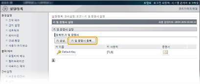 [키 및 증명서 등록] 또는 [CA 증명서 등록]을 클릭합니다.