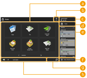 These buttons enable you to open the basic function screens, such as "Copy" and "Scan and Send".