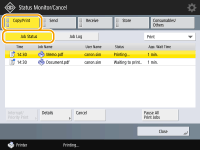 You can check the wait status for print jobs and whether or not an error has occurred during printing. Operations such as printing the document ahead of other documents and temporarily suspending or canceling printing are possible as well.