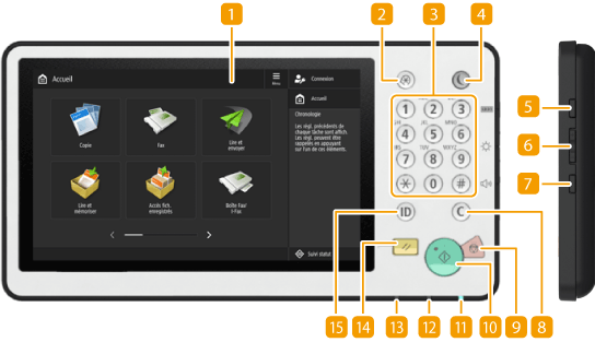 Appuyez sur cette touche pour vous connecter à l'appareil si l'authentification personnelle est nécessaire. Lorsque vous avez fini d'utiliser l'appareil, appuyez de nouveau sur cette touche pour vous déconnecter.