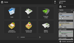 Premere visualizzato nella schermata <Home> e nella schermata Funzioni di base per personalizzare la schermata, ad esempio ridisponendo i pulsanti o creando un tasto di scelta rapida. Personalizzazione del pannello digitale![]() È possibile modificare le impostazioni relative alla visualizzazione della schermata, come ad esempio quale schermata appare subito dopo l'accensione della macchina e la visualizzazione di un messaggio relativo alla quantità residua di carta e toner. <Impostazioni visualizzazione> È possibile impostare la visualizzazione della schermata dopo che è trascorsa una certa quantità di tempo senza operazioni. <Funzione dopo ripristino automatico> |