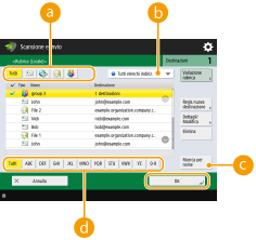 , appaiono rispettivamente l'e-mail, il file server e le destinazioni di gruppo.
