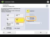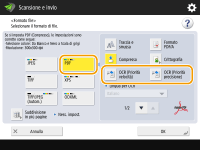 1 | Selezionare <XPS> premere <OCR (Testo ricercabile)>.![]() ![]() Per modificare una lingua da usare per l'OCR, premere <Lingua per OCR> selezionare una lingua premere <OK>. |