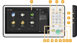 Blinkt, während Funktionen wie Senden oder Drucken ausgeführt werden. Leuchtet grün, wenn in einer Warteschlange zu verarbeitende Dokumente vorhanden sind.