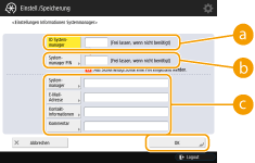 <Systemmanager> / <E-Mail-Adresse> / <Kontakt informationen> / <Kommentar>Geben Sie bei Bedarf die Informationen über den Administrator ein.