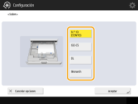 2 | Seleccione el tipo de sobres cargados en el casete. |