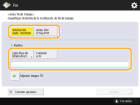 Si selecciona <Notificación cualq. resultado>, se enviará un correo electrónico de notificación por cada trabajo enviado. Si selecciona <Avisar sólo si hay error>, solo se enviará un correo electrónico de notificación cuando se produzca un error.