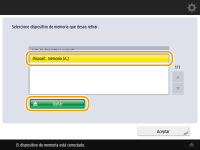 3 | Desconecte el dispositivo de memoria del puerto USB y pulse <Aceptar> <Aceptar>. |