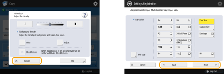 Pressione o botão <-> ou <+> para diminuir ou aumentar valores, como para ajustar a densidade. Sempre que você pressiona o botão, o controle deslizante () pode ser movido para aumentar ou diminuir o valor numérico. Ao pressionar e manter o botão pressionado, você poderá alterar o valor rapidamente.