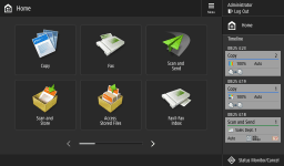 Status e registros de cópia/impressão/transmissão/documentos salvos