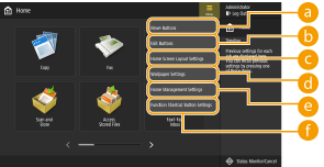 <Restrict Function Display>: Selecione as funções ou aplicativos MEAP que serão ocultadas na tela <Home>.