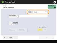 Você pode pressionar <Register to Address Book> para registrar o destino inserido. Configure as condições necessárias e especifique <Name> e <Address Book>. Para informação sobre as configurações, consulte