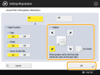 Pressione os botões de seta para selecionar a posição da impressão. Para ajustar a posição com precisão, pressione <Set Details> e especifique o local.