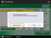 Na tela <Status Monitor>, você pode verificar os status de documentos enviados/salvos. Esta tela permite que você envie/salve documentos novamente depois de verificar seus status. Verificando status e registro de documentos digitalizados
