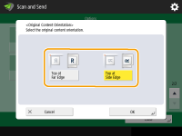 Pressione <Original Content Orientation> na tela de Recursos básicos de digitalização  <Top at Far Edge> <OK>.