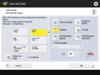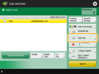 Especifique o destino na tela de Recursos básicos de digitalização. Tela de Recursos básicos de digitalização