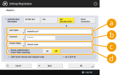 When entering the IP address, check if the usable DNS server supports only forward lookup. When the DNS server supports forward lookup only, press <Do Not Use> or <Use> in <Authentication Information> in step 4. When selecting <Use (Security Auth.)>, confirm that the DNS server supports reverse lookup.