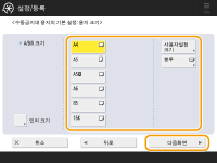 <수동급지대 용지의 기본 설정>를 누릅니다.