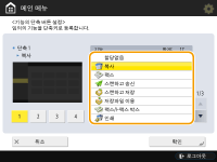 <홈> 화면의 기능에 대한 단축 키 버튼을 생성할 수 있습니다. <홈> 화면으로 돌아가지 않고 다른 기능에 액세스하려면 이 버튼을 사용합니다. 단축 키를 생성하려면 관리자 권한으로 로그인하십시오.