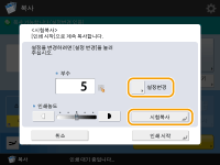 <설정변경>를 누르면 설정을 변경합니다. 설정이 변경되면 <시험복사>이 표시됩니다. 샘플을 다시 복사하십시오.