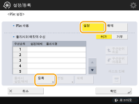 IPSec 통신에 <비밀번호 방식을 FIPS 140-2에 준거함>을 설정했는지 여부에 상관 없이 이미 FIPS140-2 인증을 획득한 암호화 모듈이 사용됩니다. IPSec 통신이 FIPS 140-2를 준수하도록 하기 위해 기기가 속한 네트워크 환경에서 IPSec 통신의 DH 및 RSA 키 길이를 반드시 2048비트 이상으로 설정해야 합니다. 기기에서는 DH의 키 길이만 지정할 수 있습니다. 기기에 RSA의 설정이 없기 때문에 환경을 구성할 때 염두에 두십시오. 최대 10개의 보안 정책을 등록할 수 있습니다. |