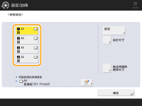 可自動偵測的紙張尺寸如果即使裝入標準尺寸紙張,但是仍然顯示 <自訂>,請按 <自訂尺寸>