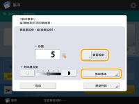 按下 <變更設定> 變更設定。變更設定後,會顯示 <影印樣本>。再次影印樣本。