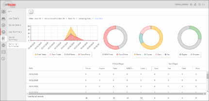 此功能可計算 uniFLOW Online Express 上相同租用戶所註冊/連接之裝置的使用狀況,然後建立報表。透過連結 uniFLOW Online Express 的認證功能,此功能可讓您檢查各使用者的使用狀況日誌,並針對各影印/掃描頁面建立費用表。