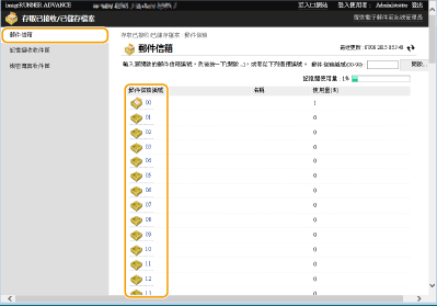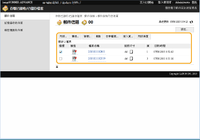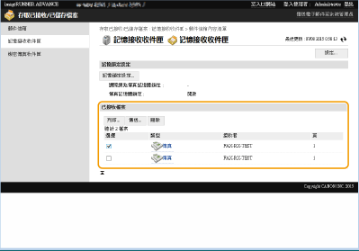 ![]() | 您可以使用遠端使用者介面來列印、傳送或刪除儲存在信箱中的檔案,或是暫時儲存在傳真/I-Fax 收件匣中的傳真和 I-fax。 |
